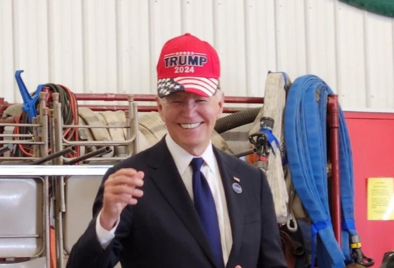 现场画面表现,拜登拿着一个赤色的帽子,短暂戴在头上又拿了下来。