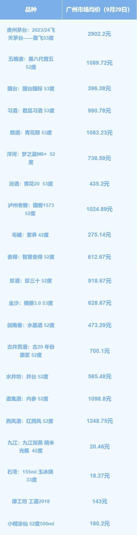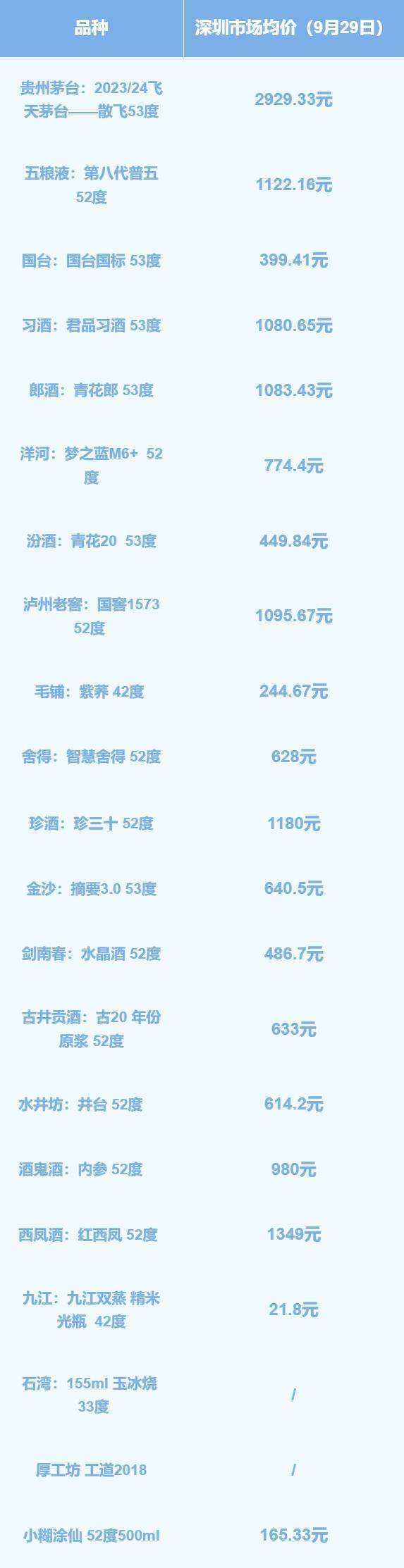 近期以来,白酒股团体迎来大反弹,引发各界关注与讨论。在消耗市场,随着国庆节的邻近,白酒市场迎来下半年又一贩卖旺季,产物贩卖环境及代价走向同样值得关注。 根据南都湾财社-酒水新消耗指数课题组记者整剃头布的第三十五期《湾区酒价》,近期广州、深圳、东莞三地的白酒产物市场零售均价总体出现上涨趋势。此中,飞天茅台在粤港澳大湾区部门都会的终端市场的均价在2900元以上,第八代五粮液、国窖1573等千元代价带产物的售价也多在1000元以上,经销商反映需求较高;别的,多家线下商超在近期上调了产物代价,也有部门开启优惠促销,节前白酒消耗氛围渐渐浓郁。 广州:飞天茅台等13款产物均价上涨,部门商超上调白酒售价 在广州市场,本期酒价统计中有13款产物的市场零售均价出现上涨。 此中,飞天茅台本期的均价为2902.2元,较上期增长89元。这重要是由于本期飞天茅台在永旺超市的售价较上期上涨了700元所致。课题组发现,该产物在广州差别渠道的售价有较大差异,如其在盒马的售价约为2508元,与永旺3699元的售价相比少了1191元。 近期,飞天茅台的批价走势连续引起行业关注,据第三方平台“本日酒价”披露的数据,飞天茅台的批价近期连续下探,但从9月28日开始回升。9月29日,24年原装飞天茅台的批价为2380元。 从广州部门终端现实走访环境来看,飞天茅台在终端的零售均价体现相对坚挺,有烟酒门店向课题组表现,近期飞天茅台的进货价在2500元以上,但也有不肯透露姓名的经销商也表现,现在飞天茅台“熟人价”在2400元至2500元之间。 飞天茅台以外,第八代五粮液、君品习酒、汾酒青花20、古井贡古20、水晶剑、毛铺紫荞等产物的均价皆较上期有差别水平的上涨,这重要是由于部门线下商超在近期上调了不少白酒的售价。以永旺为例,除飞天茅台上调700元以外,汾酒青花20 的售价由上期的399元上调至本期的499元,国窖1573由上期的1049元上调至1099元,君品习酒由上期的899元上调至1099元,水晶剑的售价也由上期的469元上调至本期的539元。 在ole超市,汾酒青花20的售价由上期的425元上调至本期的458元,但青花郎的售价则较上期降落了150元,其他产物售价保持稳定;在朴朴超市,第八代五粮液的售价低于千元,得手价959元,上期售价为955元,水晶剑的售价由上期的438元上涨至本期的458元;在京东酒天下,国窖1573、青花郎、汾酒青花20等产物的售价有稍微下调。 在广州一盒马线下门店,课题组记者看到第八代五粮液、国窖1573等名酒被陈列在门店显眼位置,产物上方也打上“限时特价”标签。伙计称,邻近国庆是白酒贩卖的紧张节点,因而店内名酒产物陈列近期刚刚调解过,代价也更加优惠。 ![]() 在山姆会员市肆广州天河店,记者同样看到该门店的白酒贩卖专区更新了白酒陈列样式,部门产物打出优惠价,如青花郎近期的售价为994.3元,较上期的1029元降落35元左右。 ![]() ![]() 深圳:国庆假期前部门名酒代价回升,有产物代价新低 深圳市场方面,相比上一期中秋节前后代价,其白酒零售价体现较为“坚挺”,包罗飞天茅台、第八代五粮液、梦之蓝M6+、青花汾20和国窖1573等酒款等,代价保持稳固。以近期代价颠簸较大的飞天茅台为例,深圳市场本期该产物零售均价约2930元/瓶,不停保持在2900元/瓶的高位,课题组留意到,在深圳相比其他报价的终端,飞天茅台在终端的价格至少“企稳”2700元或以上。 除了飞天茅台外,部门名酒乃至在终端均价出现代价上扬环境,比方第八代五粮液,该产物上期在深圳的零售均价为1097.02元/瓶,而在本期零售均价则是提拔至1122.16元/瓶。 不外部门名酒代价上调同时,有酒款在部门终端出现新低价。比方古井贡酒的古20,该酒款在京东酒天下深圳渠道报出了低价,代价录得578元/瓶,课题组留意到,在粤港澳大湾区渠道较少铺货的古20,代价出现一起下探趋势,纵然在酒零售均价相对较高的深圳,也出现了下滑势头。 深圳一名酒商向课题组表现,由于中秋和国庆假期之间存在较大的“时间窗”,在本地部门商务欢迎也连续至中秋后到国庆前,在这些场景中,千元代价带的酒款需求度相对较高,因此岂论是批价或零售,名酒都具有相对较高的报价。 在中秋假期需求较高的300至500元代价带方面,包罗剑南春、国台国标和青花20等代价颠簸不大,相比上期部门酒款代价颠簸在2至10元之间。上述酒商表现,300元至500元代价带的白酒在终端需求上仍旧较为“火热”。 ![]() 东莞:白酒代价迎来上涨,系中秋促销竣事后调价 中秋事后,东莞多个渠道的白酒产物代价迎来上涨。 本期《湾区酒价》,课题组记者统计东莞6个渠道白酒产物代价发现,21款白酒产物中,有13款代价较上期有所上涨,6款代价没有变更,另有两款(红西凤、厚工坊工道2018)在统计的6个渠道内始终无售卖。 13款代价上涨的白酒涨幅差异较大,此中涨幅较高的有古井贡酒年份原浆古20,在南都湾财社统计的6个渠道中,仅沃尔玛有售,在上期《湾区酒价》统计中,其优惠了89元,代价下探到570元,而本期统计中,又规复659元售价。 其他代价上涨的白酒产物中,第八代五粮液均匀售价为1079元,较上期增长了40元,这重要是由于其在华润超市的售价由上期的1099元上涨到1299元。别的,汾酒青花20均匀售价上涨了34.58元,到达478.3元,其在华润超市、大润发和沃尔玛三个渠道的售价都较中秋节前有所上涨,此中,在华润超市涨幅较大,到达81元